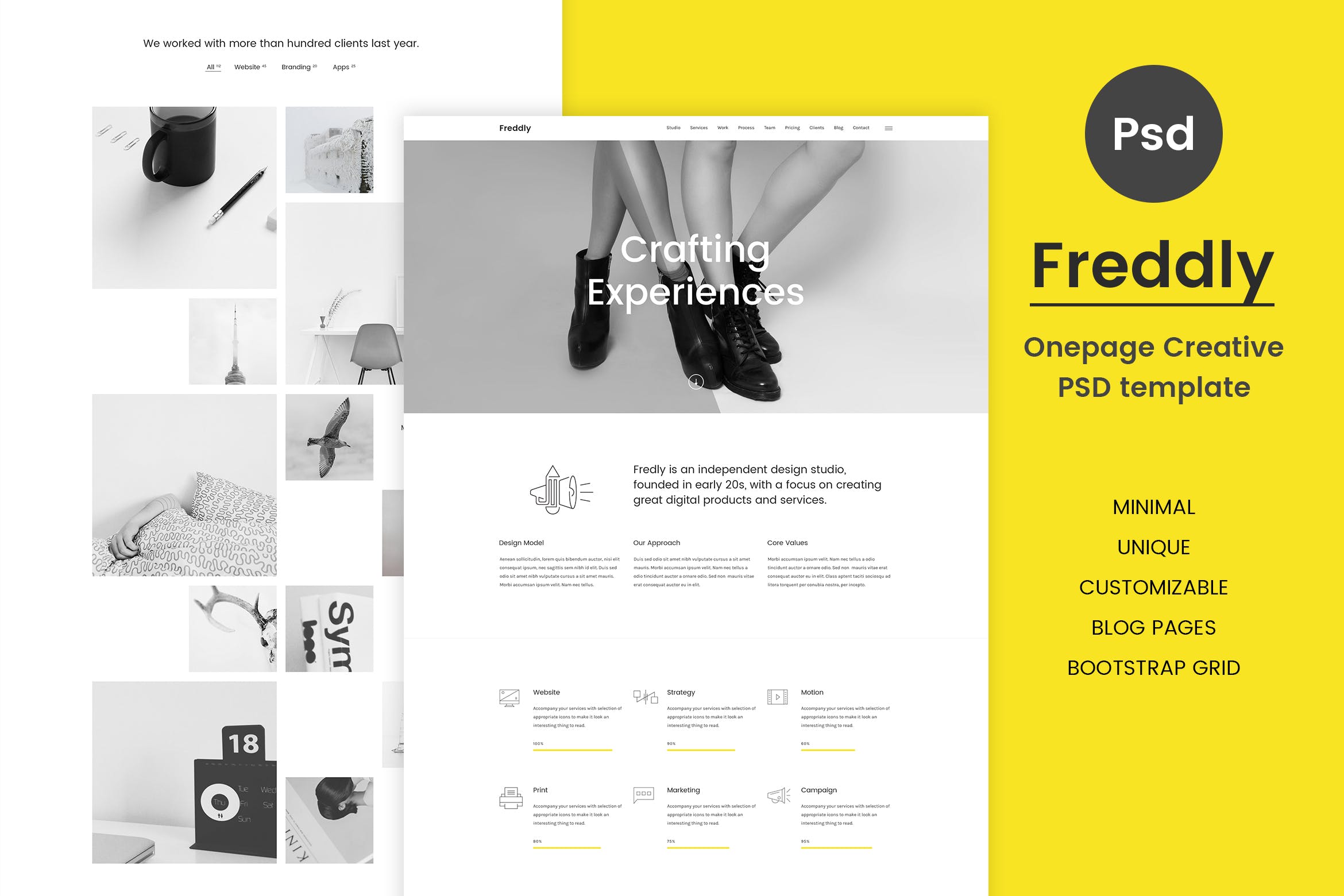 文艺极简设计工作室网站网页psd模版