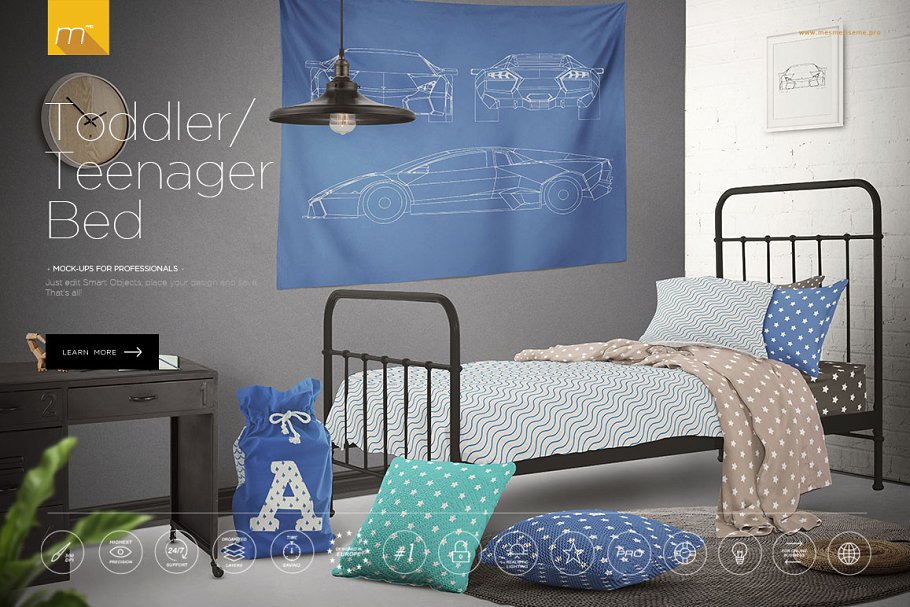 儿童房罗马卷帘模拟效果产品设计展示样机