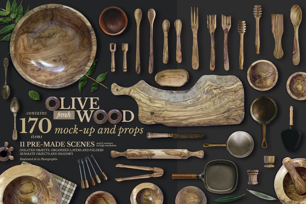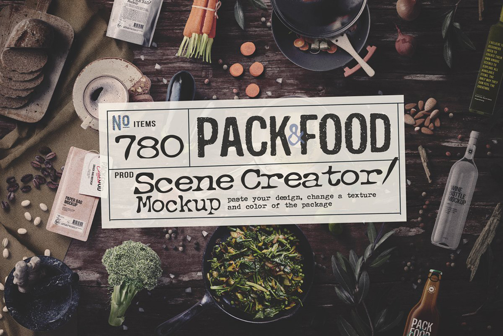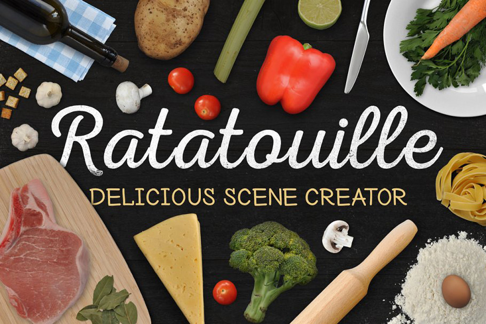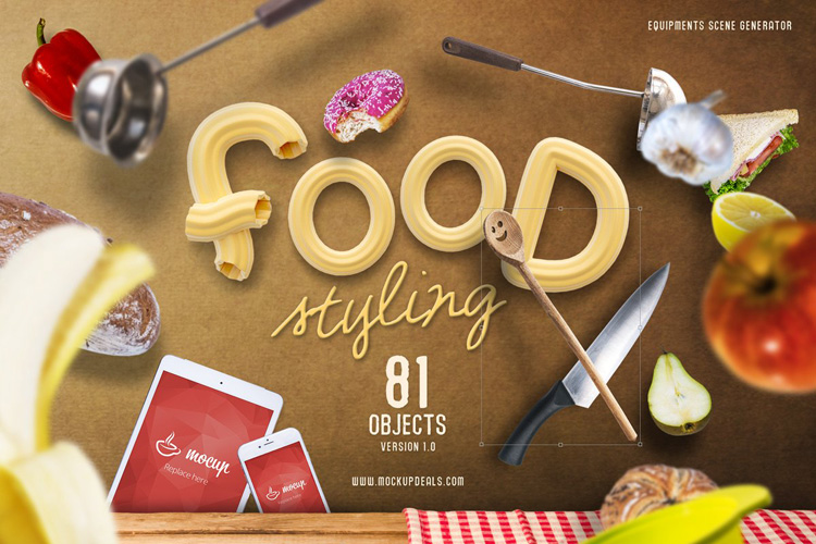 餐厅美食水果蔬菜俯拍效果展示场景素材