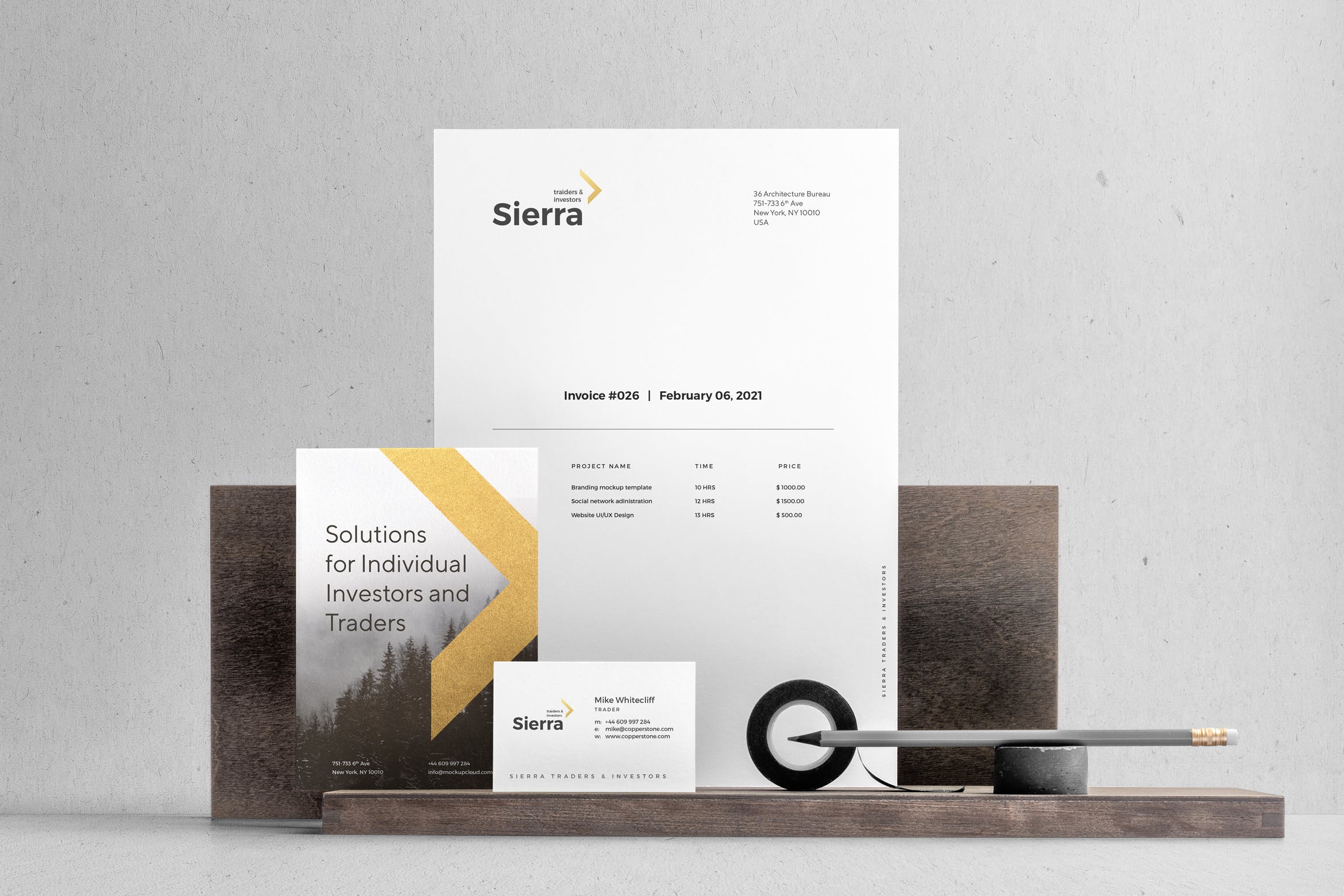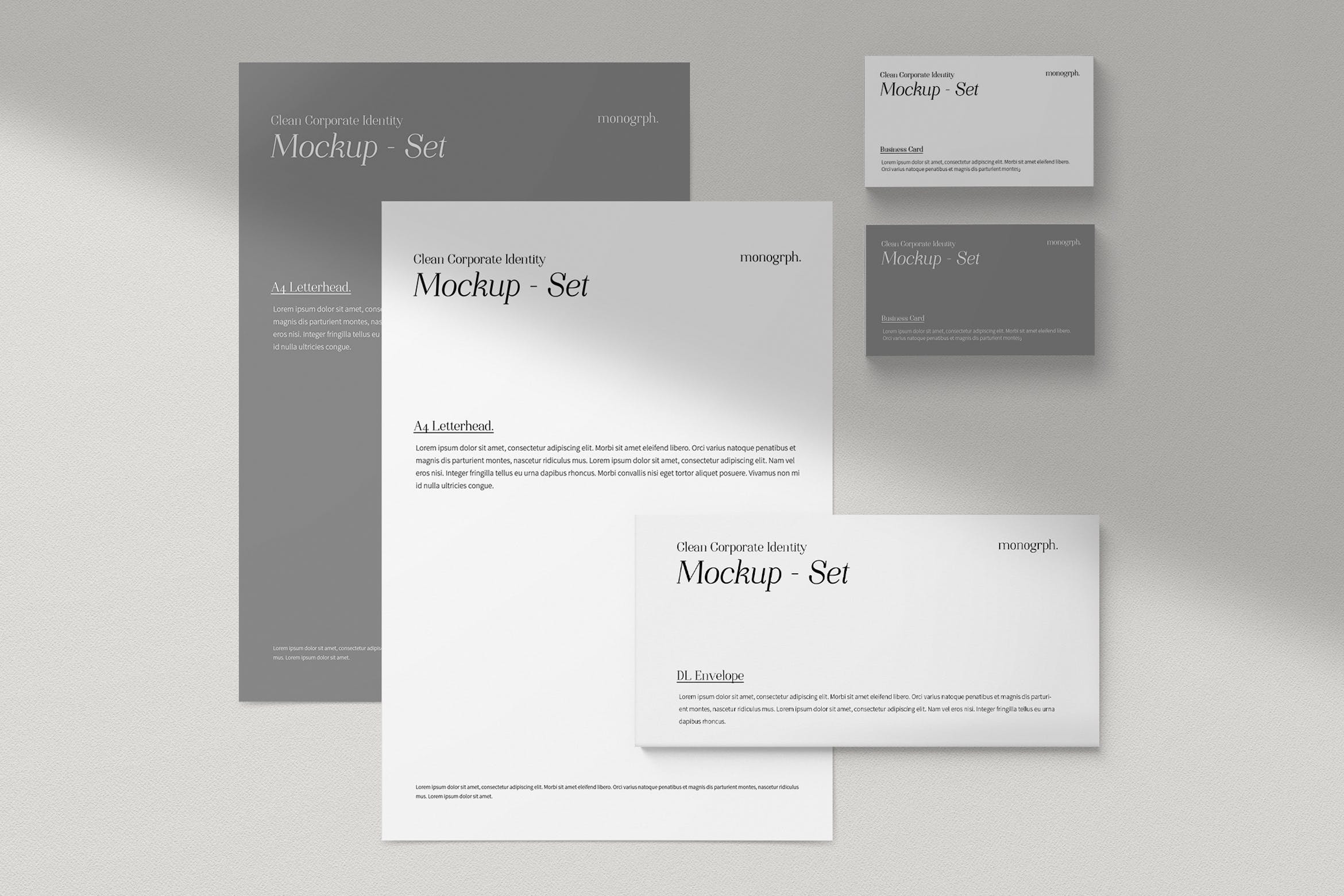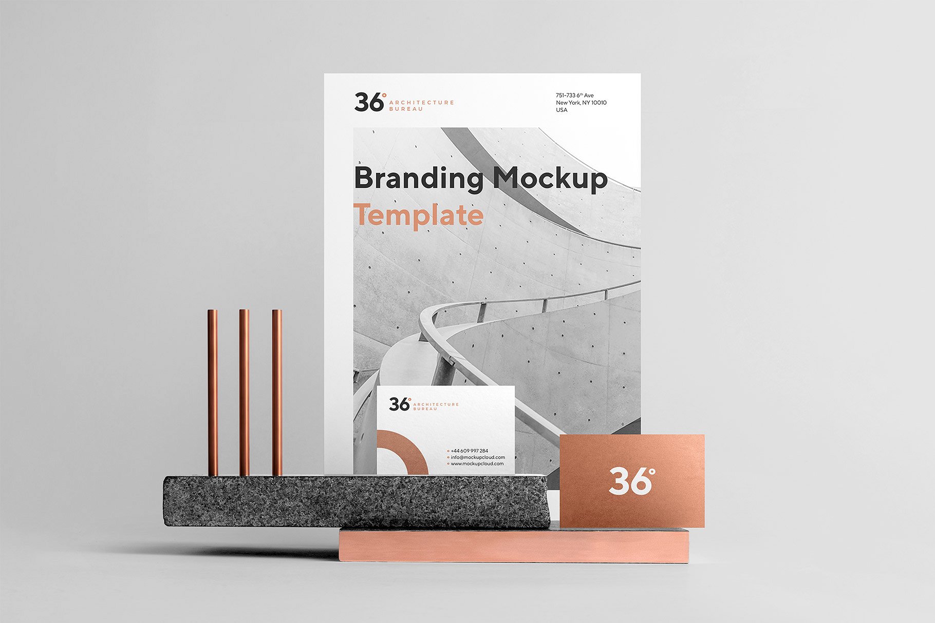 品牌VI设计A4纸海报名片明信片组合场景样机