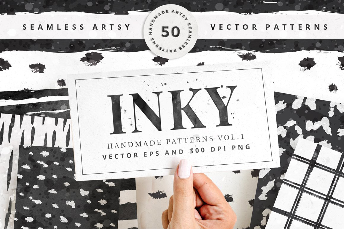 50款黑白抽象涂鸦几何条纹插画无缝图案