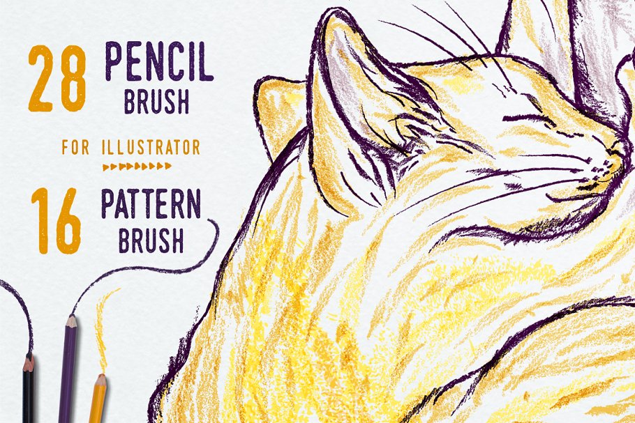 28款彩铅蜡笔绘画效果笔刷+16款花边图案