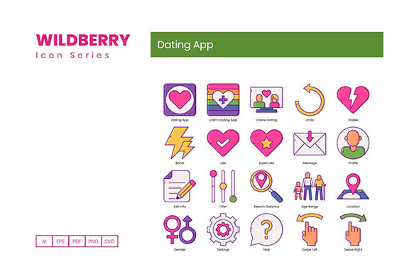 60款婚礼爱情约会情人节主题多色单线图标icon标识矢量素材