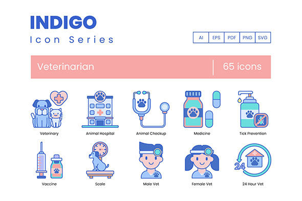 65款宠物医院猫狗疫苗医药主题多色单线图标icon标识矢量素材