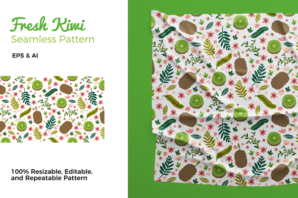 绿叶花朵猕猴桃碎花无缝图案素材