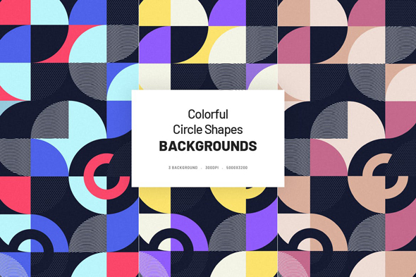 3色彩色抽象圆形曲线几何无缝图案背景素材