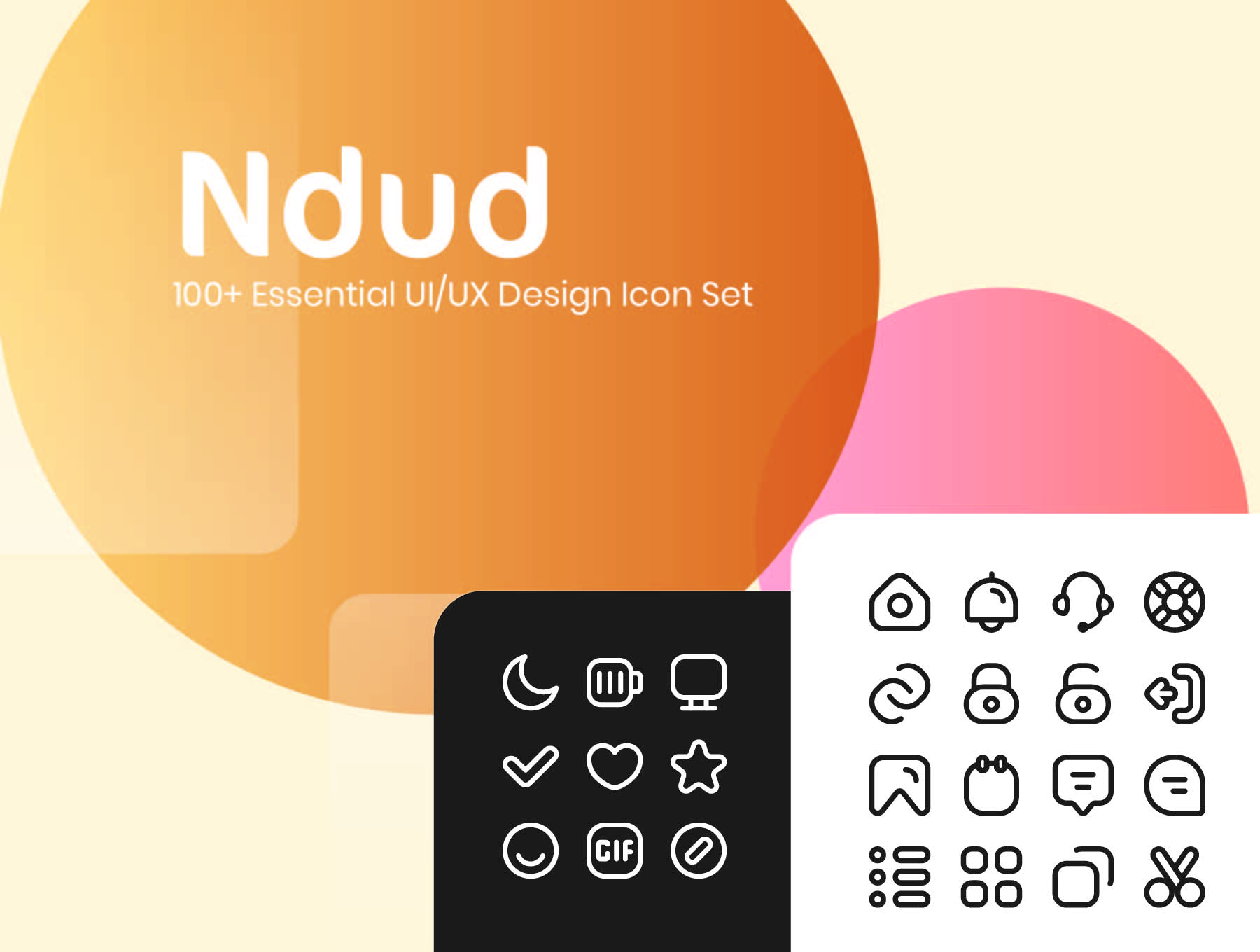Ndud 100+ Simple Line Essential UI/UX Icon Set