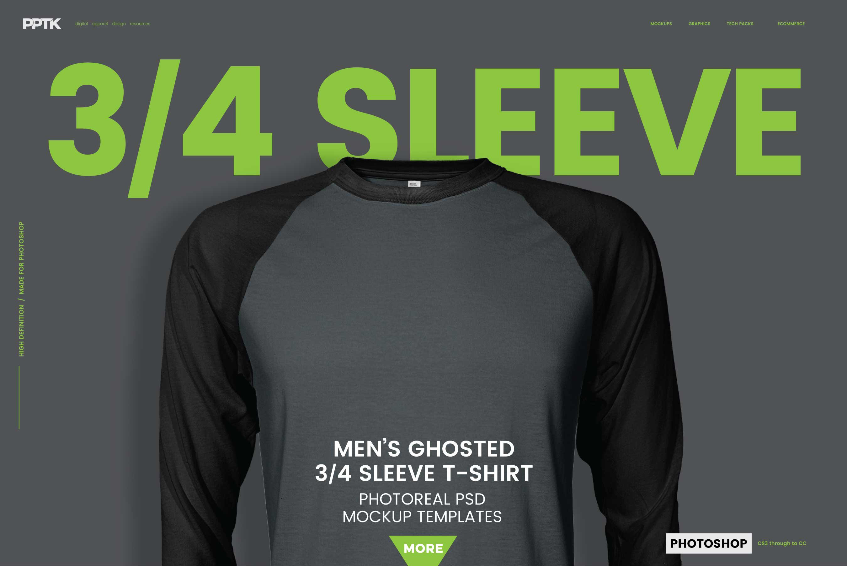 Raglan 3/4 Sleeve T-Shirt 运动T恤汗衫样机