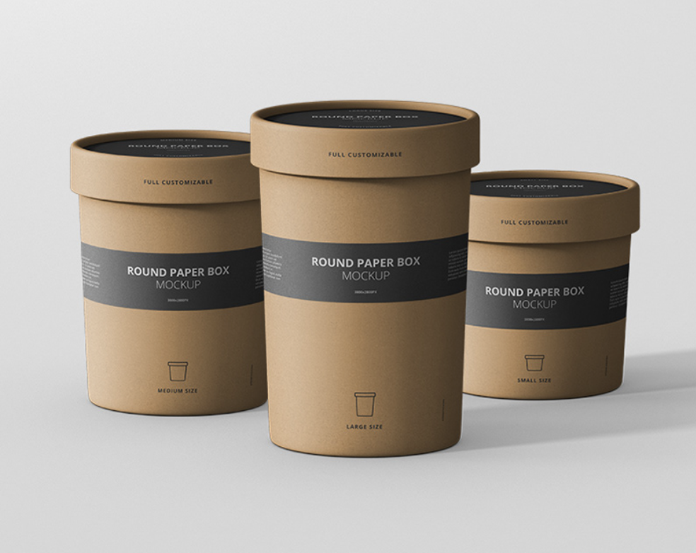 多款圆形牛皮纸硬质收纳盒多角度模拟效果样机