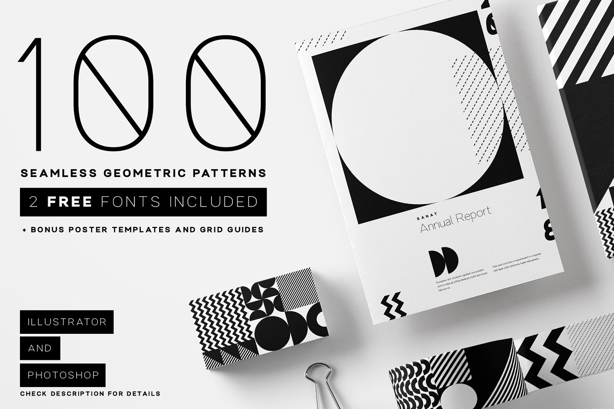 100款黑白极简几何图形元素模块海报素材