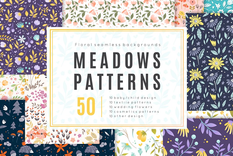 50款清新文艺小碎花植物绿叶图案背景