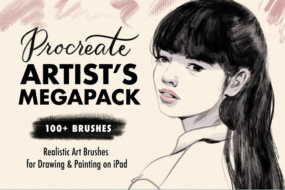 颗粒水墨彩绘动画风格纹理插画Procreate画笔