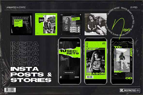 潮流创意个性街头新潮服饰ins公众号推文排版版式模版 psd素材