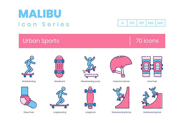 70款城市运动体育俱乐部多色单线图标icon标识模版 AI矢量格式