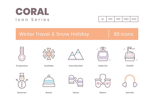 85款冬季滑雪滑冰缆车旅行单线图标icon标识模版 EPS矢量格式