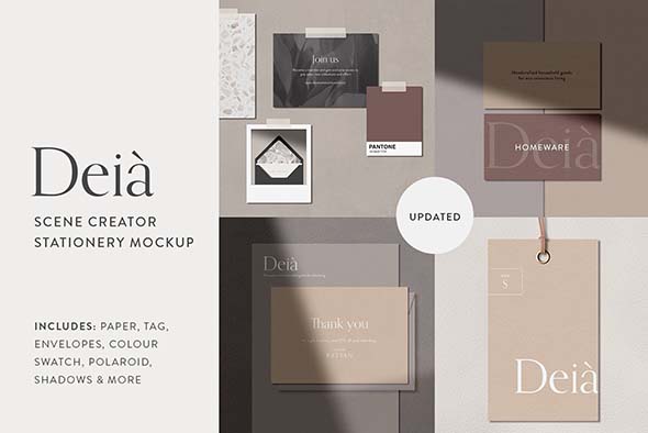 多规格文具名片吊牌文件组合文艺光影场景样机展示效果mockup模版
