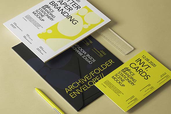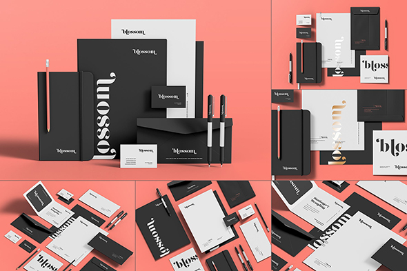 现代品牌文具场景VI效果模拟样机mockup智能贴图psd设计素材模版