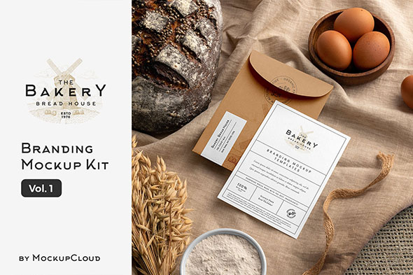 面包品牌文具场景模拟效果展示样机mockup智能贴图ps设计素材模版