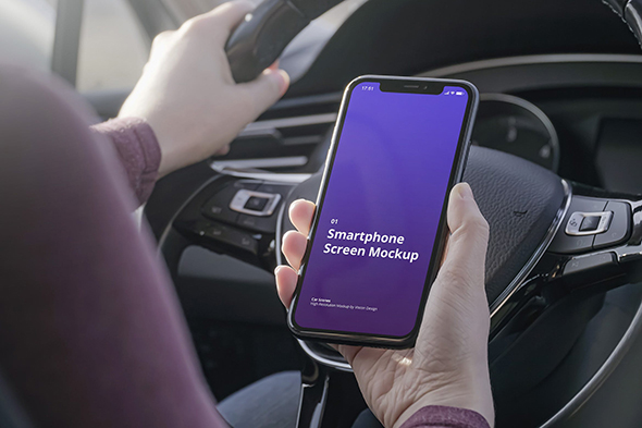 车内手持iPhone11界面设计场景模拟效果展示样机mockup