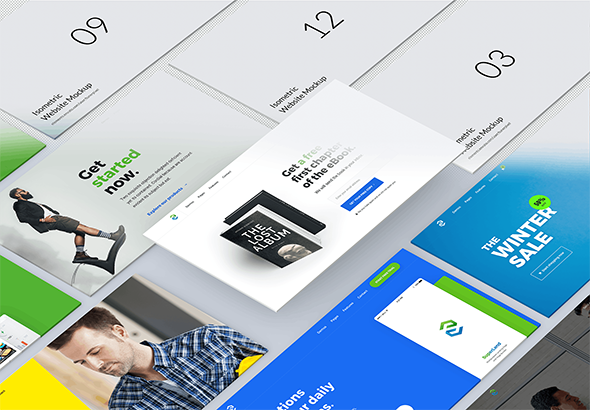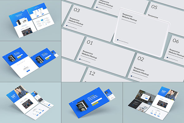 5款网页平板UI界面立体页面样机展示效果mockup智能贴图psd模版