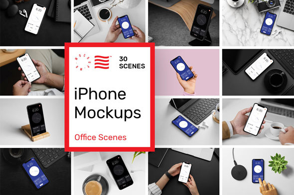 30款苹果智能手机UI界面设计场景效果样机