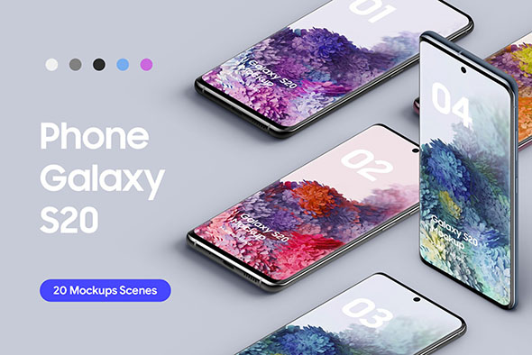Samsung Galaxy S20智能手机多角度屏幕效果展示样机mockup模版