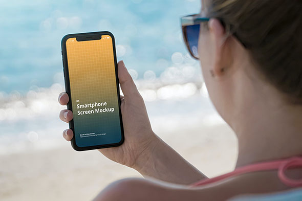 iPhone11户外手握智能设备场景模拟效果展示样机mockup智能贴图ps