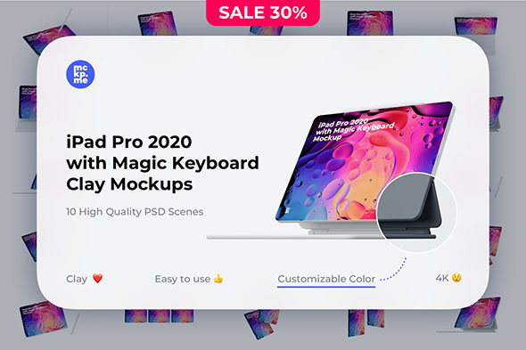 iPad pro 2020苹果新款平板电脑妙趣键盘样机mockup智能贴图模版