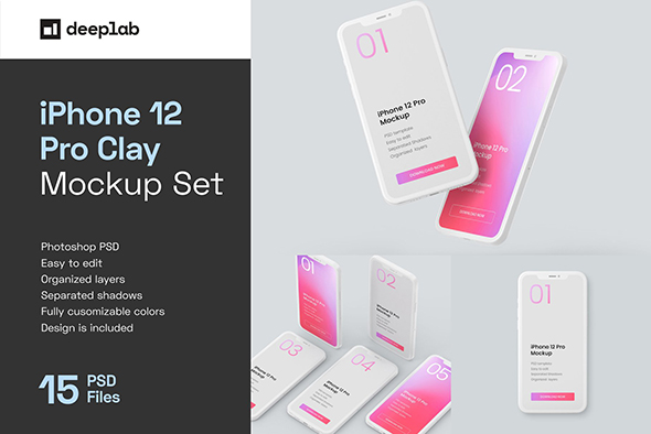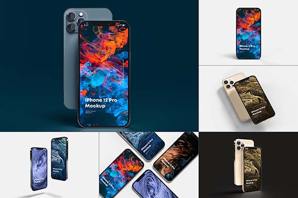 Phone 12 Pro智能设备手机屏幕界面多角度效果样机mockup素材模版