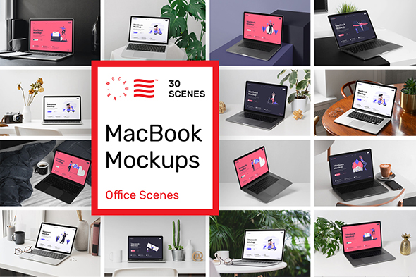 MacBook电脑智能设备界面场景模拟效果展示样机mockup素材ps模版