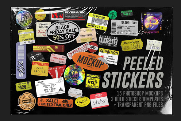18款复古做旧磨损贴纸样式样机展示素材