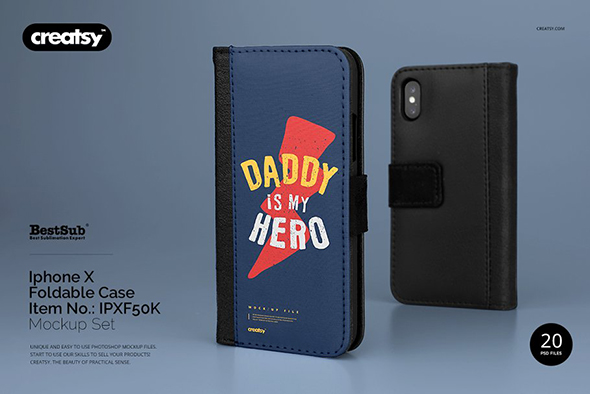 iPhoneX折叠皮革手机壳多角度模拟效果展示样机