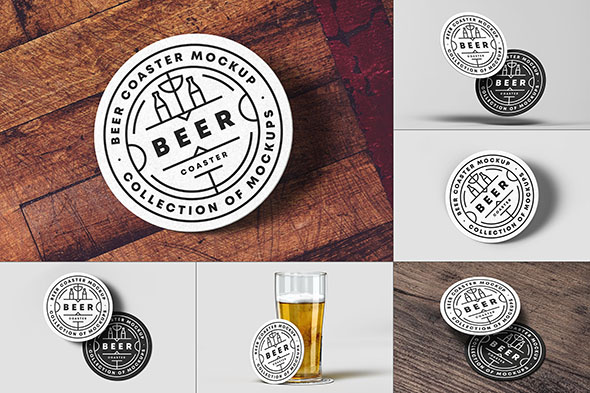 圆形啤酒杯垫文创卡片设计logo品牌vi贴图展示效果ps样机素材