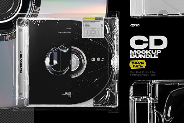 复古潮流CD音乐唱片塑料薄膜包装封面设计样机mockup贴图psd模版