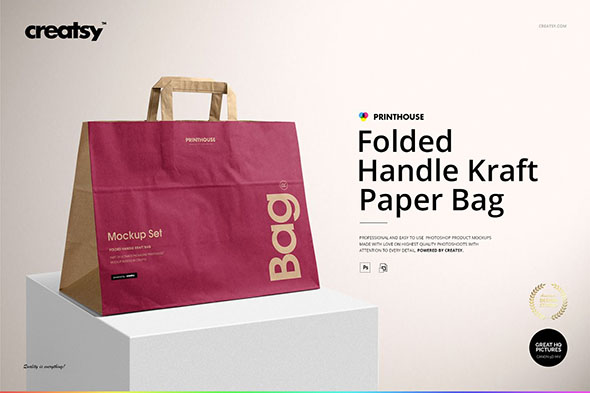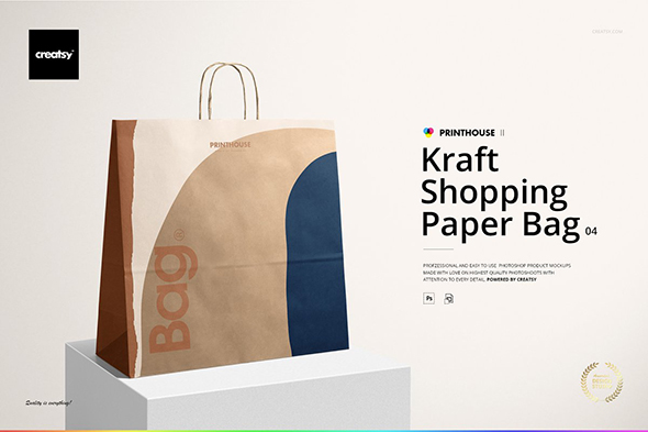 牛皮纸购物袋拎袋手提袋样机mockup智能贴图psd设计素材模版