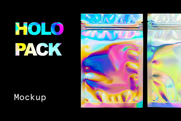 20款真实塑料塑封袋镭射渐变包装袋效果展示样机mockup智能贴图ps
