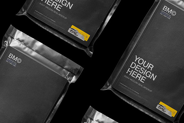 密封磨砂包装袋内置气泡袋标签效果展示样机mockup智能贴图ps模版
