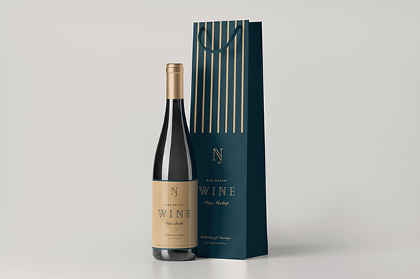 葡萄酒香槟手提袋模拟效果展示样机mockup智能贴图psd素材模版