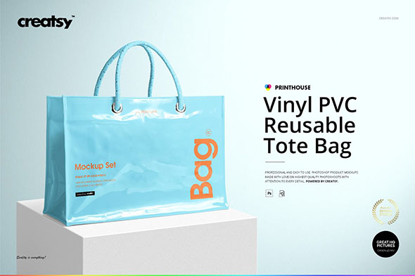 潮流PVC皮塑料拎袋手提袋多角度模拟效果展示样机mockup智能贴图