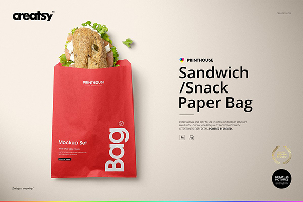 三明治汉堡小吃零食包装袋样机mockup智能贴图psd设计素材模版