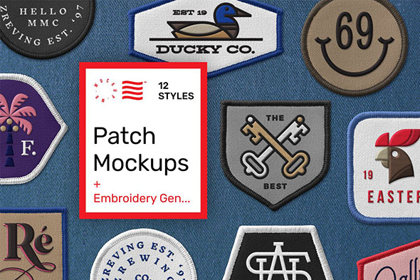 刺绣衣服补丁标签缝制logo图案效果展示样机mockup智能贴图ps模版