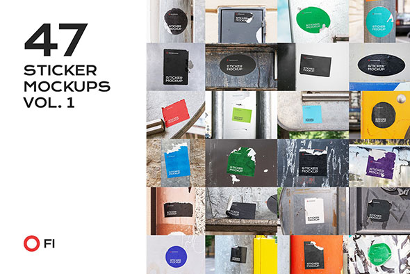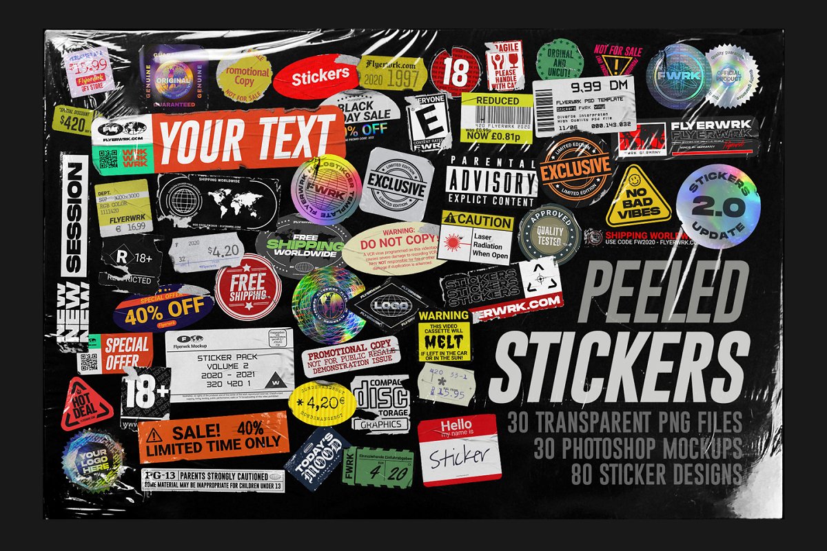 47款街头潮流小广告不干胶贴纸设计贴图ps样机素材场景展示效果