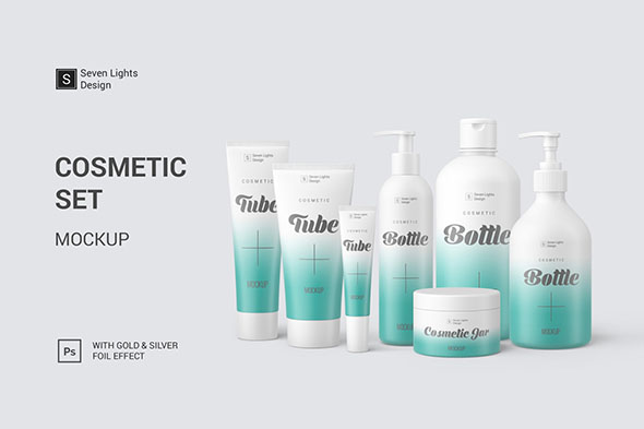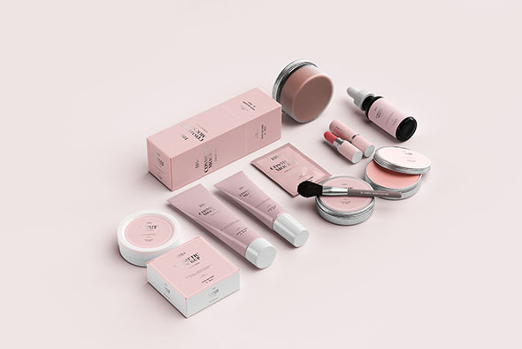 美妆化妆品产品包装多角度模拟效果展示样机mockup智能贴图ps模版