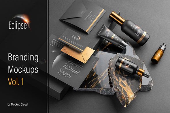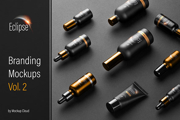 10款黑色质感化妆品美妆品牌包装设计样机mockup智能贴图ps模版