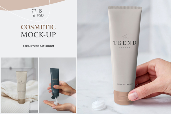 6款化妆品软管挤压瓶乳液洗面奶包装场景样机