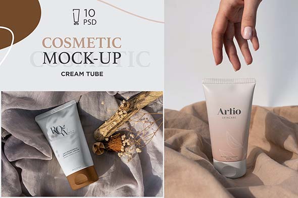 化妆品软管乳液护肤品产品包装设计场景贴图ps样机素材展示模板