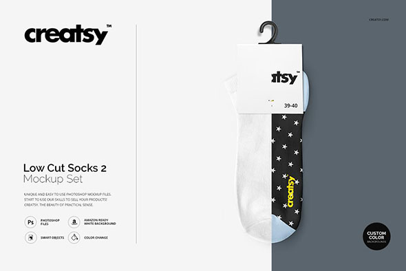 短袜多角度模拟效果展示样机mockup智能贴图psd素材设计模版