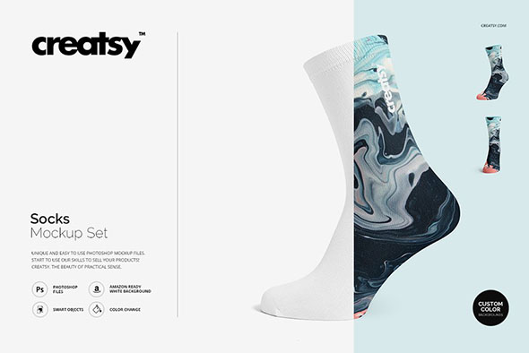 袜子多角度模拟效果展示样机mockup智能贴图psd设计素材模版
