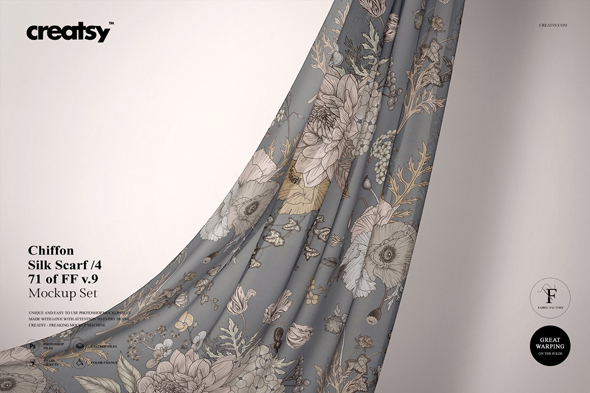 雪纺方巾丝巾面料织物场景模拟效果展示样机mockup智能贴图ps模版
