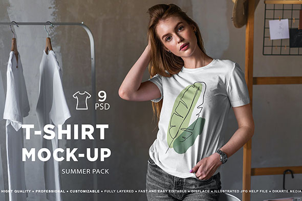 女性休闲T恤户外场景模拟效果展示样机mockup智能贴图psd素材模版